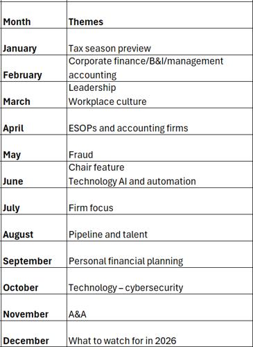 2025 Journal of Accountancy editorial calendar