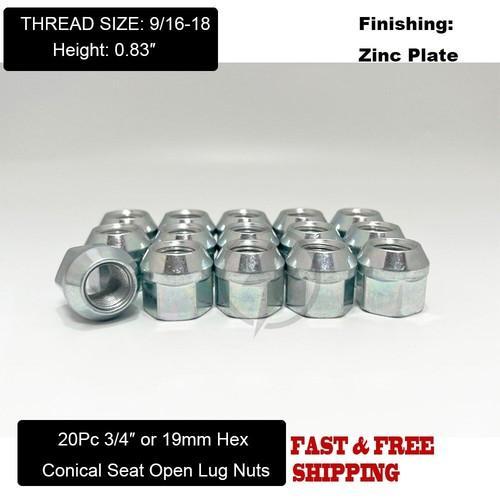 20Pc Black 9/16-18 Acorn Open End Lug Nut 3/4" Hex Dodge Dakota...