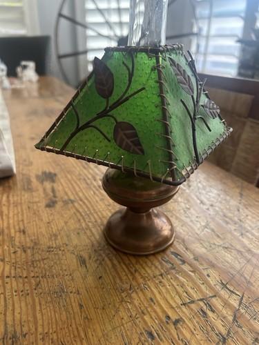 Antique Mini Oil Lamp P&A Mfg Co Acorn Copper With Mica? Green...