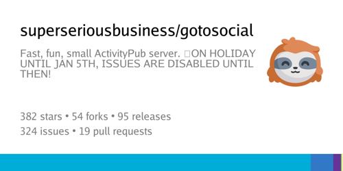 superseriousbusiness/gotosocial: Fast, fun, small ActivityPub...