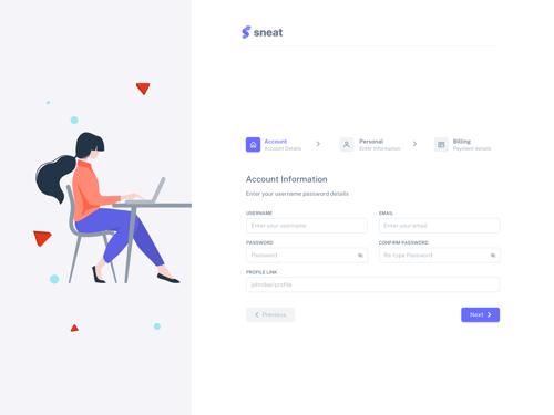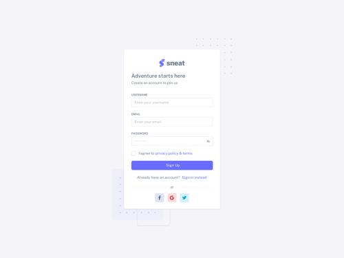 Create Account | Sneat Sketch Admin Template | Zeplin Scene