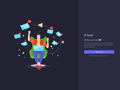Verify Email - Dark | Sneat Sketch Admin Template | Zeplin Scene