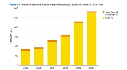 IRENA afirma que en 2024 se invirtieron 554 000 millones de...