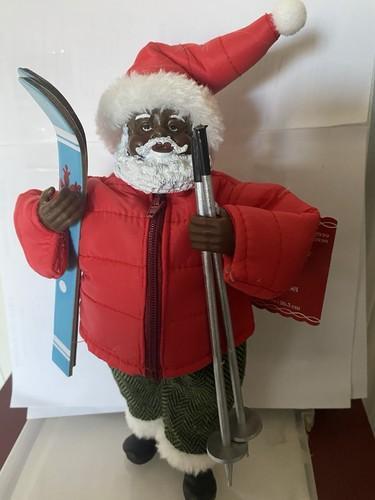 NWT African American Ski Santa Claus w/ Skis Figurine NEW 10L