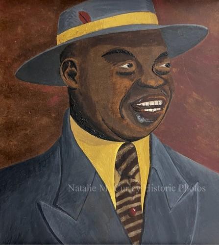 1940s African American Dandy Portrait Signed Folk Art Oil...