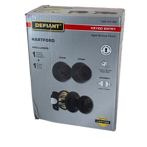 Defiant Hartford Aged Bronze Front Door Knob Combo Pack Double...