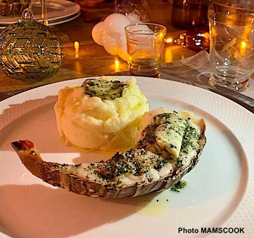 Queues de langouste rôties au beurre d'ail et citron, et riz...