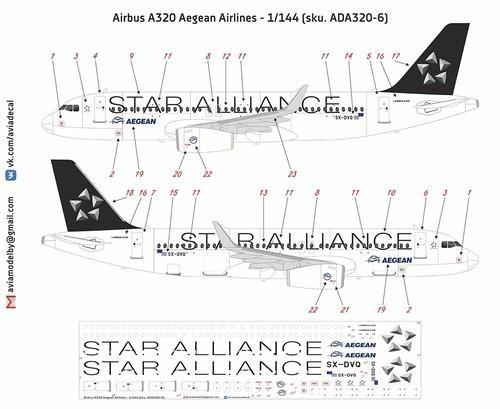 1/144 Aviadecal #ADA320-6 Airbus A320 Aegean Airlines