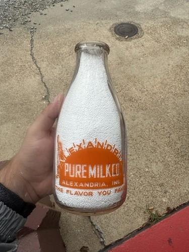 Pure Milk Co Alexandria Indiana Milk Bottle Vintage Pyro Quart...