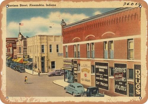 METAL SIGN - Indiana Postcard - Harrison Street, Alexandria...