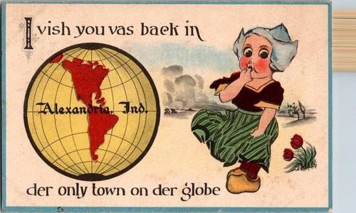 Vintage Alexandria Indiana Comic Postcard with Dutch Girl Globe...