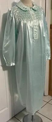 Vintage Amanda Stewart Nightgown M Brushed Satin Green Lace...