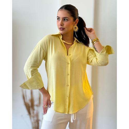 Camisa Viscolinho Amarelo Manteiga - Inovar Forever