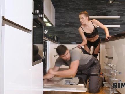 Mutfak masasında bir kız arkadaşı çekerek bacaklarının amator...