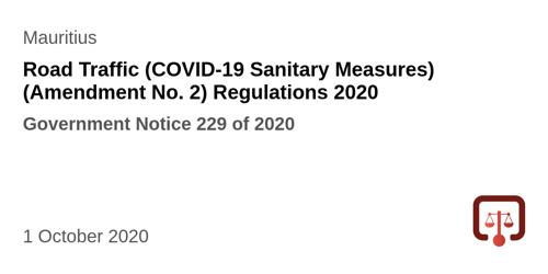 Road Traffic (COVID-19 Sanitary Measures) (Amendment No. 2...