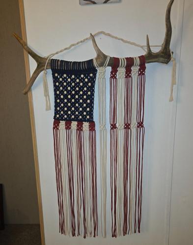 Macrame American flag, elk antler, wall decor, rustic, farm...