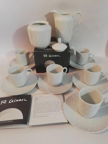 RICHARD GINORI ANCONA 6 COFFEE CUPS WITH SUGAR PLATES ITALIAN...
