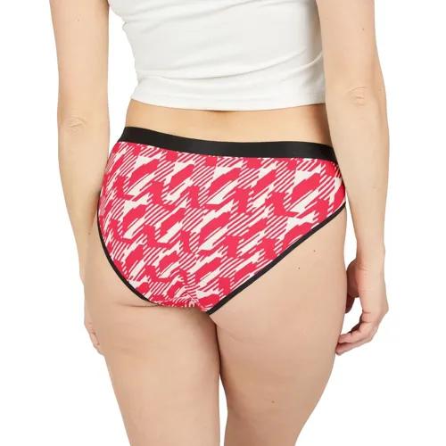 Women’s Briefs Underwear AOP – Red Houndstooth Print, Elastic...