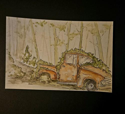 Original Watercolor Appalachian Kudzu- Kudzu On Antique Truck
