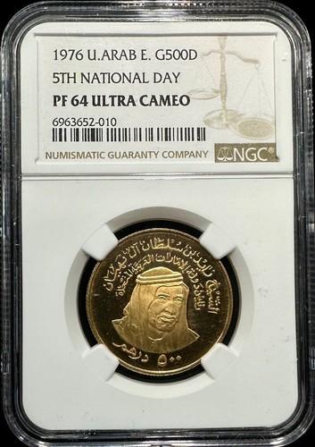 1976 United Arab Emirates 500 Dirhams Gold Coin NGC PF 64 Ultra...