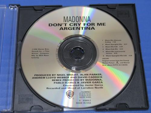 DISC ONLY: Madonna - Don't Cry For Me Argentina - 1996 Pop CD...