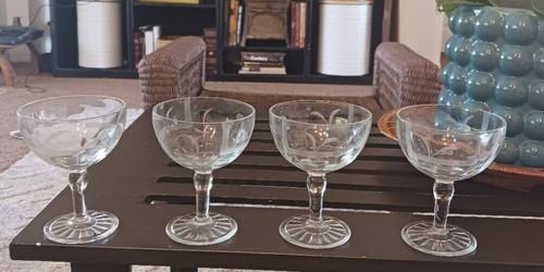 Vintage Stemware Champagne Sherbert Coupe Etched Floral Art...