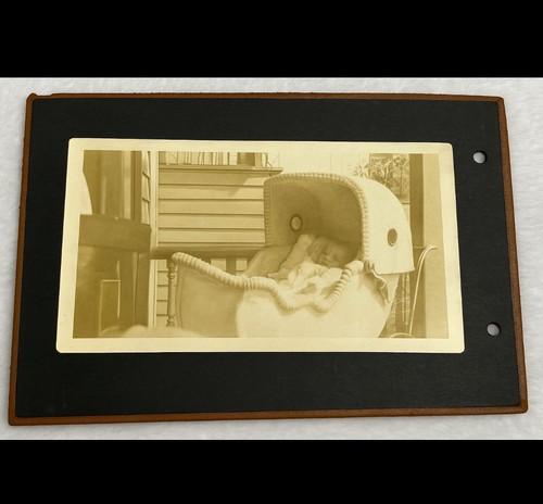 Edwardian 1910s Sepia Photo Baby in Wicker Carriage Asbury Park...