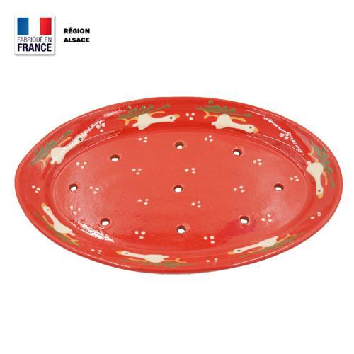Plat à Asperges Rouge Décor Oies ⋆ Poterie.Alsace