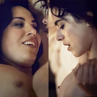 Aubrey Plaza, Alice Wetterlund breasts, lesbian scene in Mike...