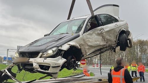 Beruchte C63 crasht bij Roosendaal na achtervolging - Autoblog.nl