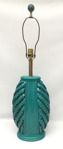 Vintage Teal Woven Wicker Table Lamp Tropical 33" Multiple...