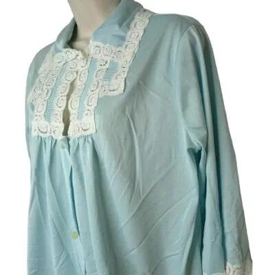 Vintage Komar Blue Nylon Robe Average Medium 3/4 Sleeve Lace...