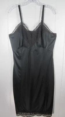 JCP Slip Dress Womens 40 Average Black Lace Trim Knee Coquette...