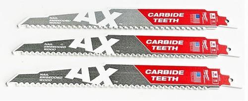 3 MILWAUKEE AX 9" CARBIDE SAWZALL BLADES 5TPI WOOD/NAILS...