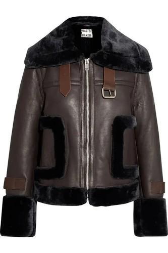 NEW, WALTER BAKER Lianna Faux Fur-Trimmed Leather Jacket...