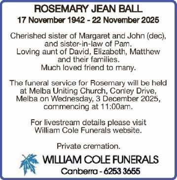 Ball, Rosemary Jean | Tributes & Funerals | The Canberra Times...