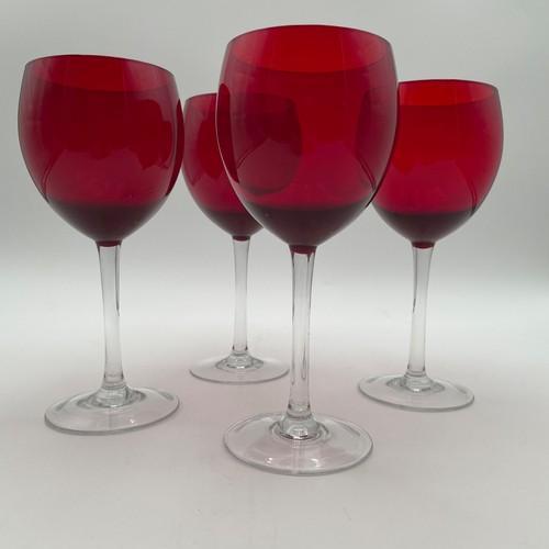 4 Ruby Red Balloon Goblet Water Wine 7 7/8" Clear Stem