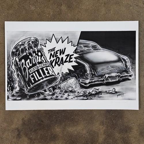 Signed Gossett PRINT vtg BARRIS 1951 Mercury Custom poster...
