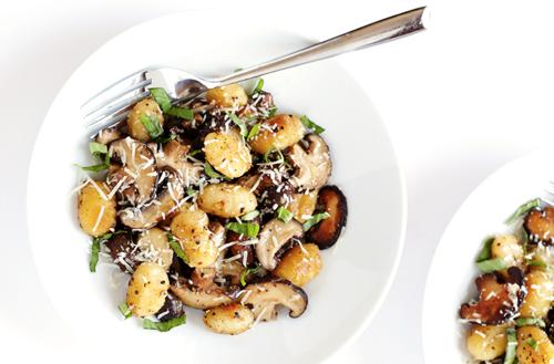 Recept: Geroosterde gnocchi met paddenstoelen, basilicum en...