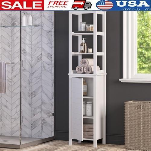 Tall Narrow Bathroom Linen Cabinet W/ Open Shelves & Concealed...