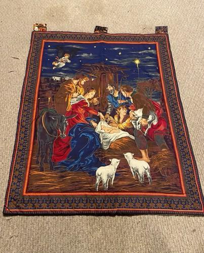 Beautiful Christmas Nativity Quilt Tapestry Bright Colors Royal...