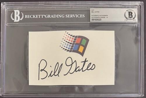 SIGNED Bill Gates Microsoft Windows Logo Cut Beckett BAS COA...