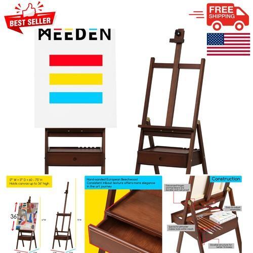 Solid Beech Wood Adjustable Easel with Storage - Perfect for...