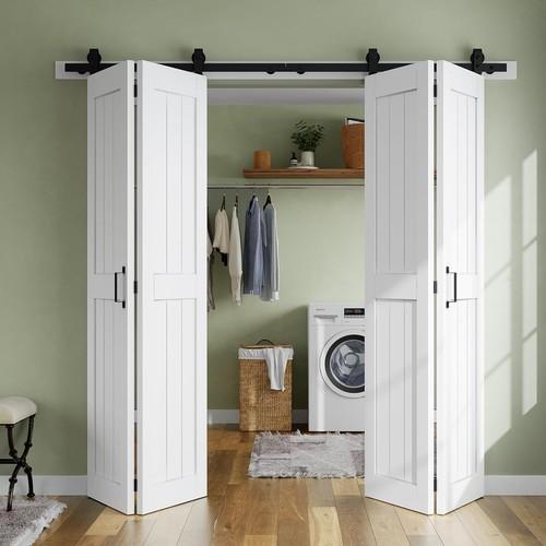 SMARTSTANDARD Bifold Barn Door 56'' x 84'',Bi-Fold Sliding...