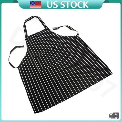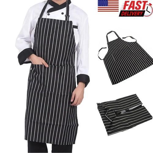 Adjustable Chef Apron with Two Pockets Striped Kitchen Bib for...