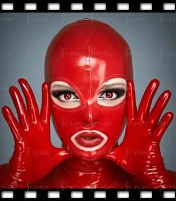 Latex Hood Mask Women Red Classic Big Mouth Rear Zip Classic...