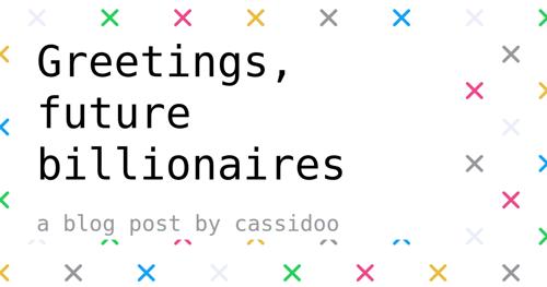 Greetings, future billionaires