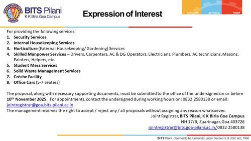 Expression of Interest (Services) - BITS Pilani