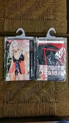 Baby Doll With Matching G-String, Red With Black Trim, Large...