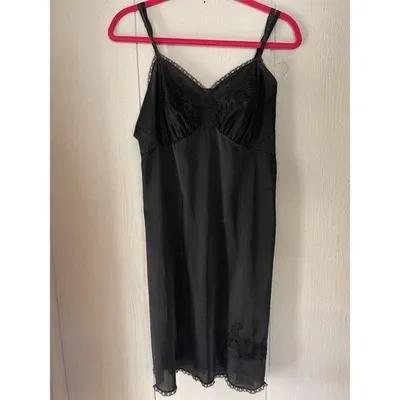 Vintage Vanity Fair Baby Doll Black Satin Slip Dress Chocolate...